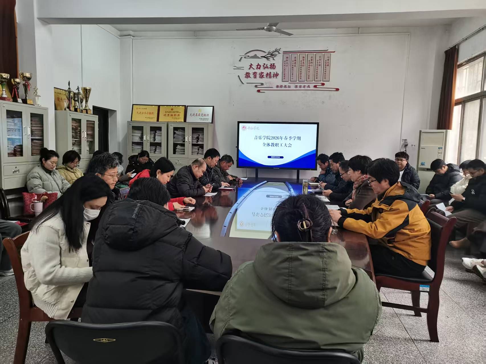 3月5日下午,音乐学院召开2026年春季学期第一次全体教职工大会,全面部署新学期各项重点工作任务。会议由院长鲁勇教授主持,学院全体教职工参会。